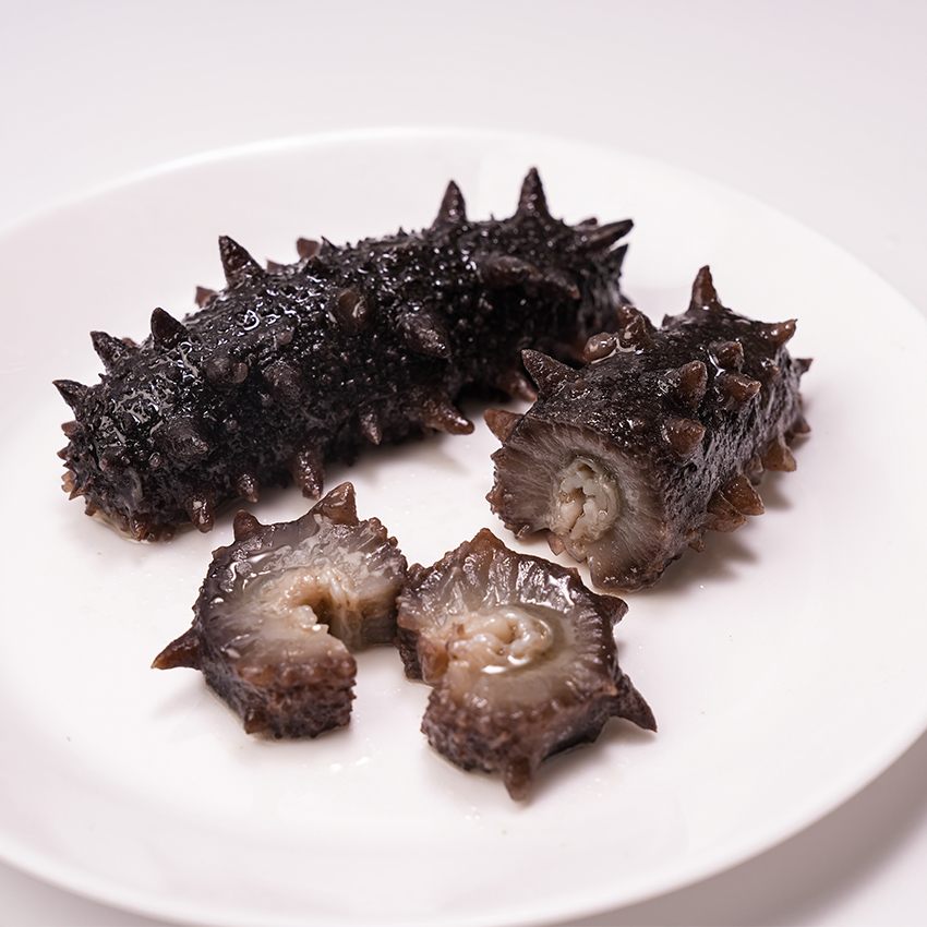 又名仿刺参、灰刺参。活时体长约20~40厘米,体呈圆简形。背面降起,有4~6行大小不等,排列不其规则的圆推形肉刺(实为疣足)。偏于腹面,有楣状触手20个:肛门偏于背面。体形大小、颜色和肉刺的多少随生活环境而异。生活于岩礁底部和水温较低海域的刺参体大、肉刺多。体壁也较厚:生于水温较高海域的刺参体形略小。捕捞季节分春秋两季。干品刺参讲究支数。即每500克只数.10支以内属高档优质产品,刺参也可达30~40支的。干刺参色呈黑褐色,涨发后柔滑软嫩,肉质肥厚,口感很好.属海参中的上品。