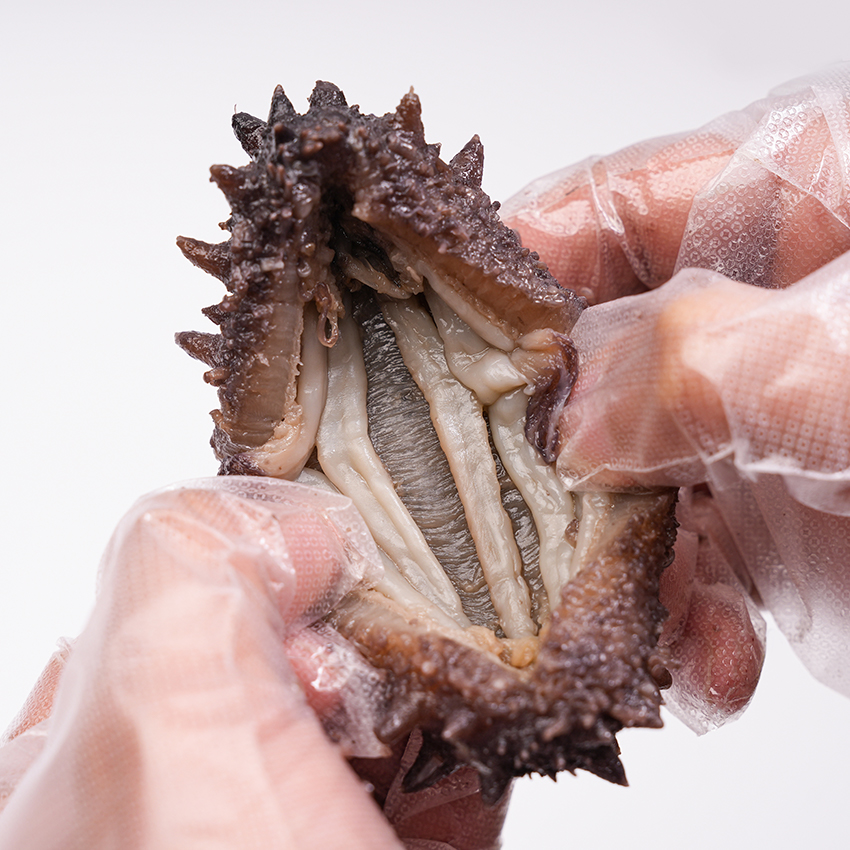 刺参:刺参非常耐煮,即使煮的时间稍长一点,也不会有太大的影响,煮制后的海参参体有弹性,刺透亮,肉质筋道,有咬头,口感好。